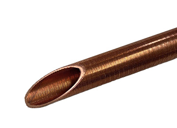 E-TUBE is a heat transfer tube that absorbs heat from a fluid on its outer surface to allow the refrigerant to evaporate, and it is fundamentally different from a fin tube that merely increases the surface area. It has excellent thermal conductivity due to the formation of fins with an ideal shape that induces evaporation on the surface of the heat transfer tube. There is a ridge formed in a spiral shape on the inner side of the heat transfer tube, which increases the resistance of the cold water flowing through the inner axis of the tube and creates turbulence in the flow of the cold water, thereby improving heat transfer performance.